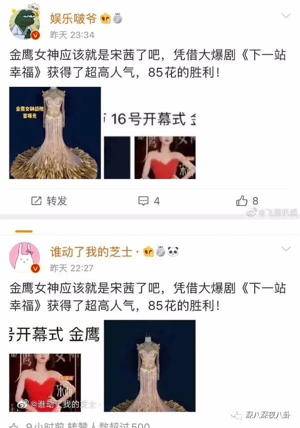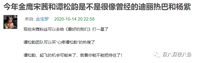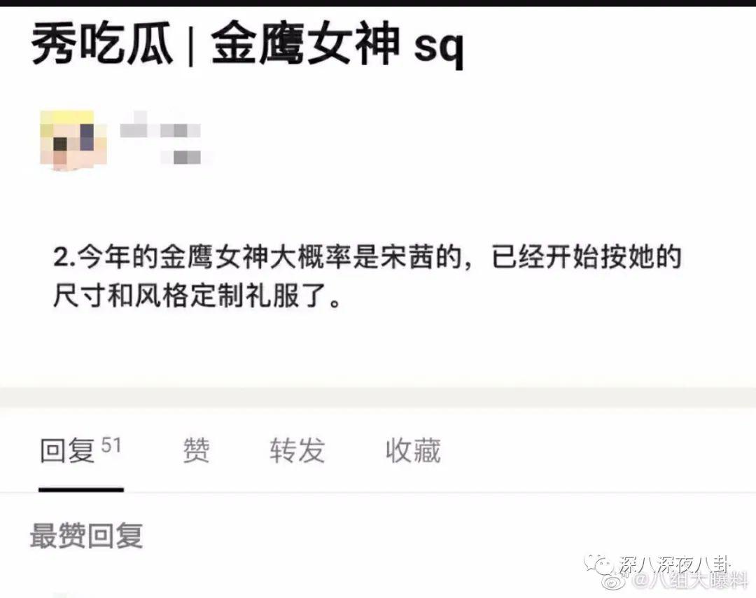 还有粉丝挖出几个月前曝出来的瓜,证明金鹰女神早已内定,谭松韵无辜陪跑。