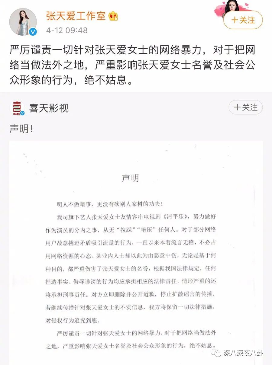 张天爱团队也不是吃素的,直接一个律师函回应。