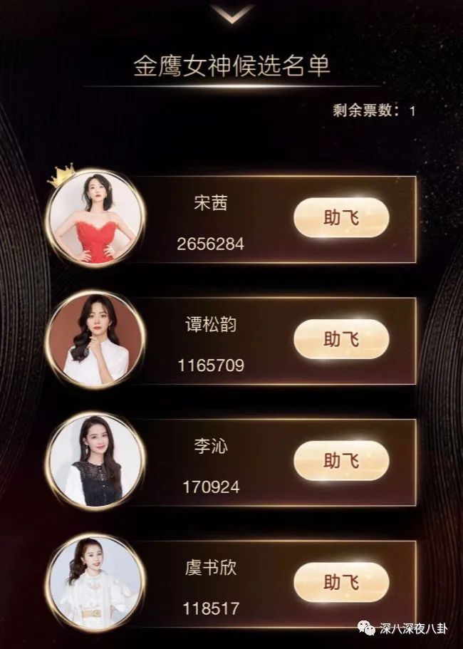 两边的票数加起来,宋茜的票数远超第二名,2020年金鹰女神最终还是她。