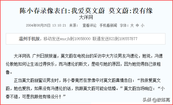 在明知道莫文蔚正和冯德伦在相恋的情况下,陈小春还高调录视频公开表示: