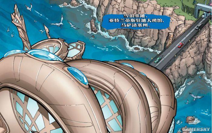 漫画中亚特兰蒂斯与陆地有一个连接点,位于于美国马萨诸塞州,是在海王和海后的倡议下建立的“雪浪基地”,作为亚特兰蒂斯的驻地大使馆。海王将其视为连接两个文明的桥梁,希望两个世界的人民可以在这里交流并互相理解。