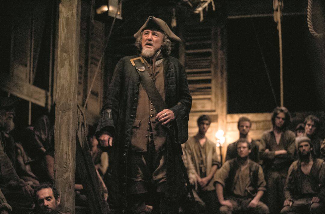 不过,《黑帆》之所以能成为海盗剧中的王者,靠的是其出色的情节与人物塑造。全剧在叙事上采用了罕见的“双雄模式”,约翰·西尔弗成长为海盗王,与弗林特船长对抗殖民者的两条线索并行不悖。