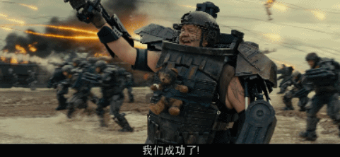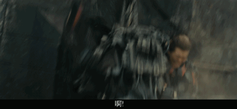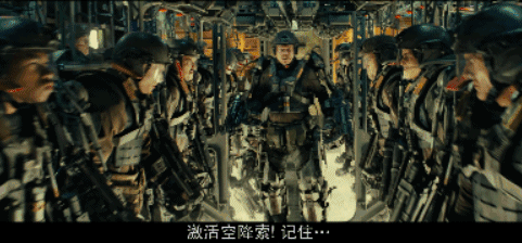 凯奇被锁在战甲里,飞机时不时颠簸一下,他心神不宁,旁边一胖子嘲讽他: