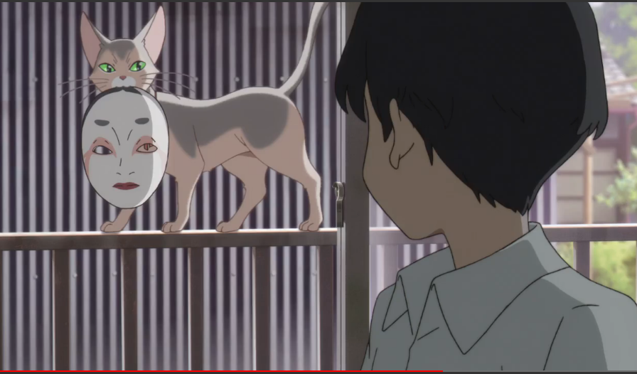 无限正是通过佩戴猫面具成功走进了日之出的内心,并且化解了自己对于恋爱失败的窘境。当一切困难克服结束之后,摘下面具就成了最后一道坎。影片结局时,日之出与无限一起摘下了各自的面具,在夏日祭的星空下浪漫相拥。
