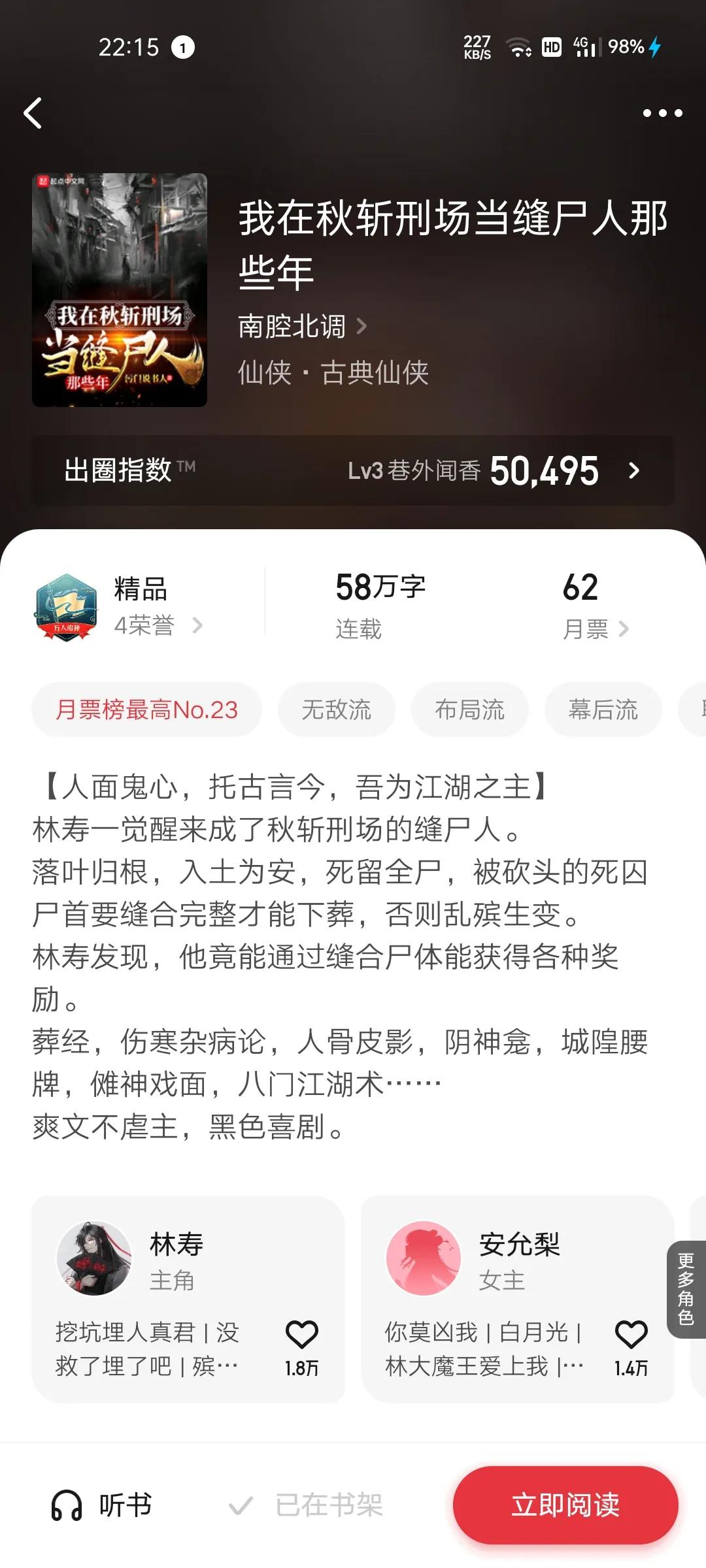 10.我在秋形斩场当缝尸人那些年(南腔北调)新书月票18790均订2万还是不错的,但是以为身体原因正在请假断更中,不知如何能更新,以清朝历史为背景,仙侠悬疑文,缝尸人,我不是剑神,我在斩妖司除魔二十年,开局菜市口被斩杀(2万均订以上),系列无敌文还是不错的。