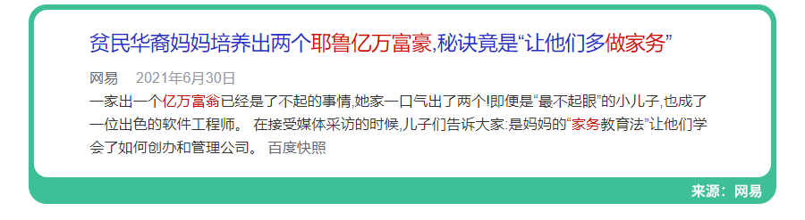 之前新闻报道过一位华裔妈妈,来自一个贫穷的农家,却培养出两个耶鲁亿万富翁,秘诀就是“让孩子多做家务”。