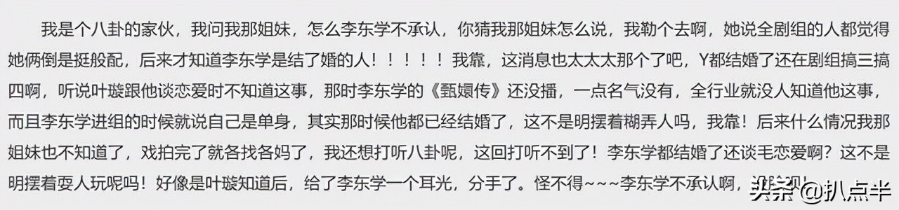 据说是李东学的正室夫人带人前往剧组,众人这时才恍然大悟:“原来果郡王早就隐婚了?!”