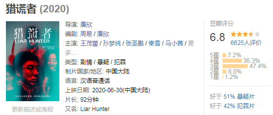 再比如今天要分享的这部叫《猎谎者》的网络电影,虽然只在豆瓣拿到了6.8分,但却值得一看!