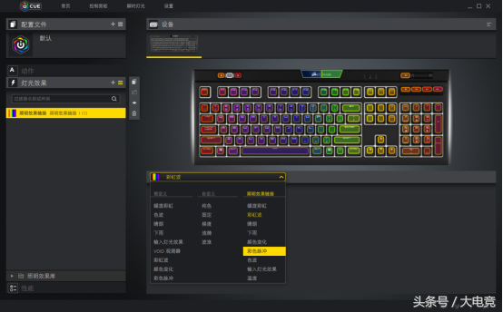 海盗船的icue驱动程序比刚出rgb机械键盘那会儿成熟多了,现在驱动可以支持所有海盗船外设的灯光联动,驱动内部预设的灯光效果也非常的多,能满足大多用户的需求,当然喜欢折腾的朋友也可以自定义每一个按键的灯光效果。