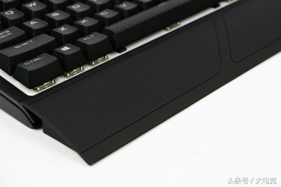 键盘手托的表面有一层类肤质的涂层,摸起来很舒服,表面的颗粒设计有助于排汗,但是类肤图层有一个问题就是寿命较短,需要经常清洁,可以减缓它打油的速度。