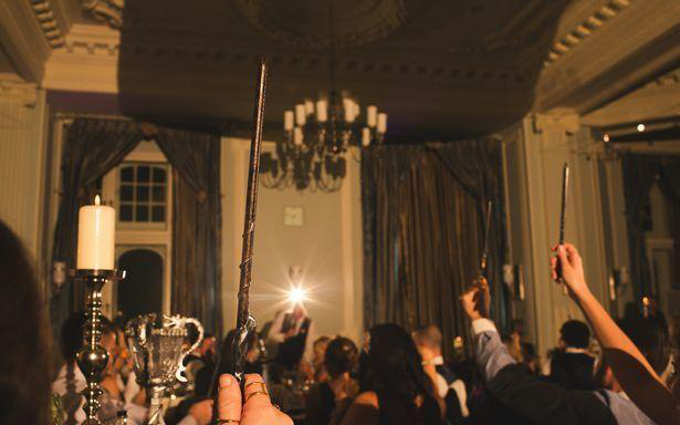 在美国的佛罗里达州,就曾经举办了一场特殊的订婚仪式。婚礼现场被布置成了霍格沃茨城堡的样式,参与见证这场仪式的宾客们,也都高举手中的定制魔杖,为两位新人送上最真挚的祝福。