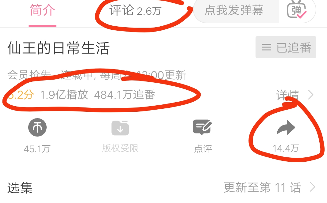因为仙王的日常生活已经更新至第11集,前几集的剧情还算可以,但第10集的剧情是让它的评分降低的罪魁祸首。前几集的剧情主要以轻松幽默吐槽为主,而主角的设定则是最强仙王,他拥有能毁灭地球的力量,不过一共更新11集,主角王令几乎已经成了配角,而其他人才是主角。