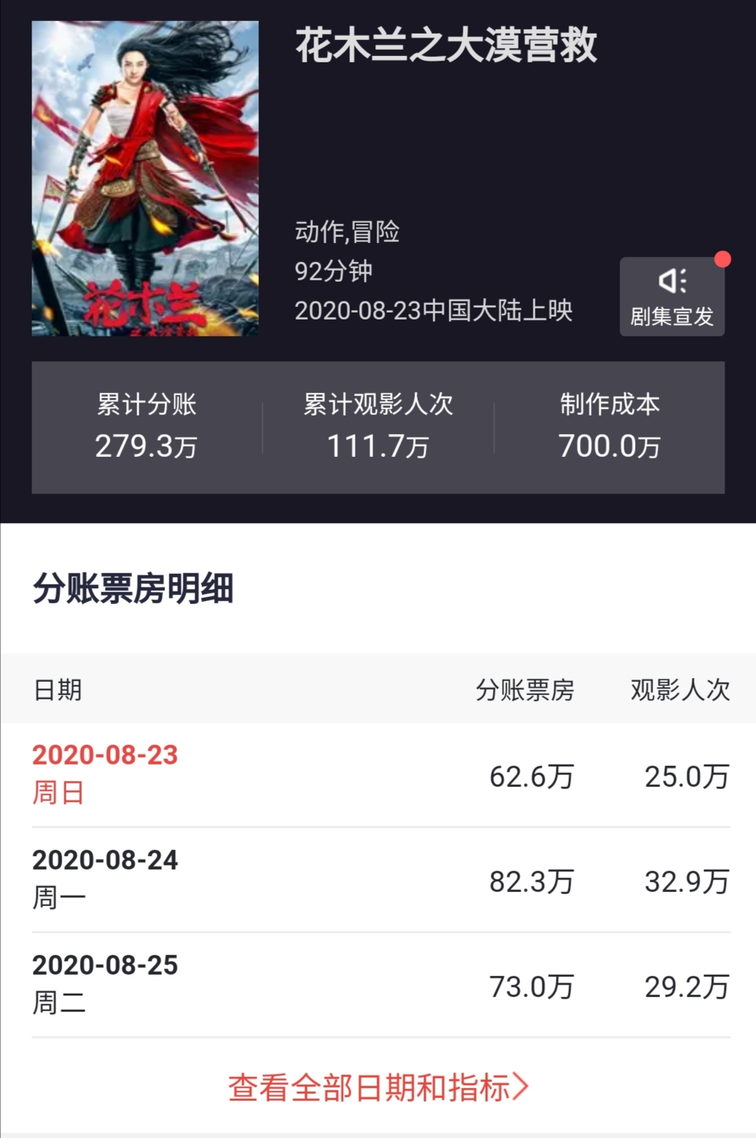 虽然成本也仅仅700万,但是按照这样的票房趋势,回本也是有一定难度的。