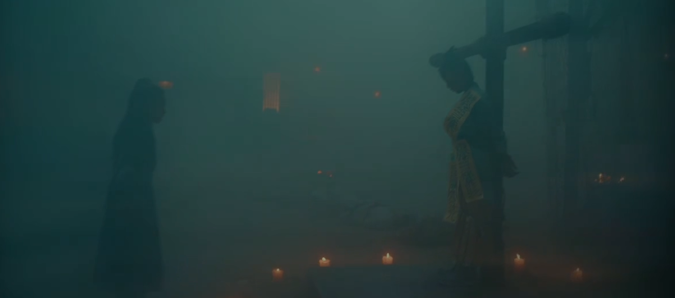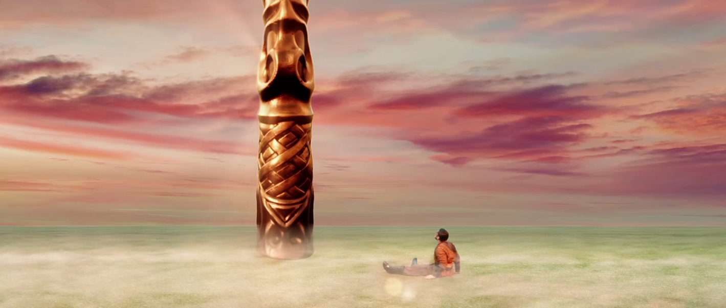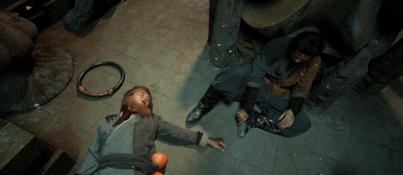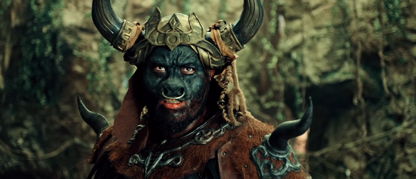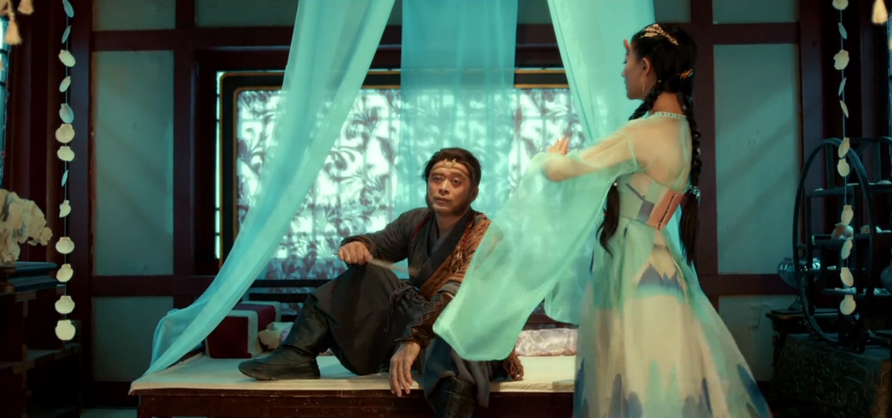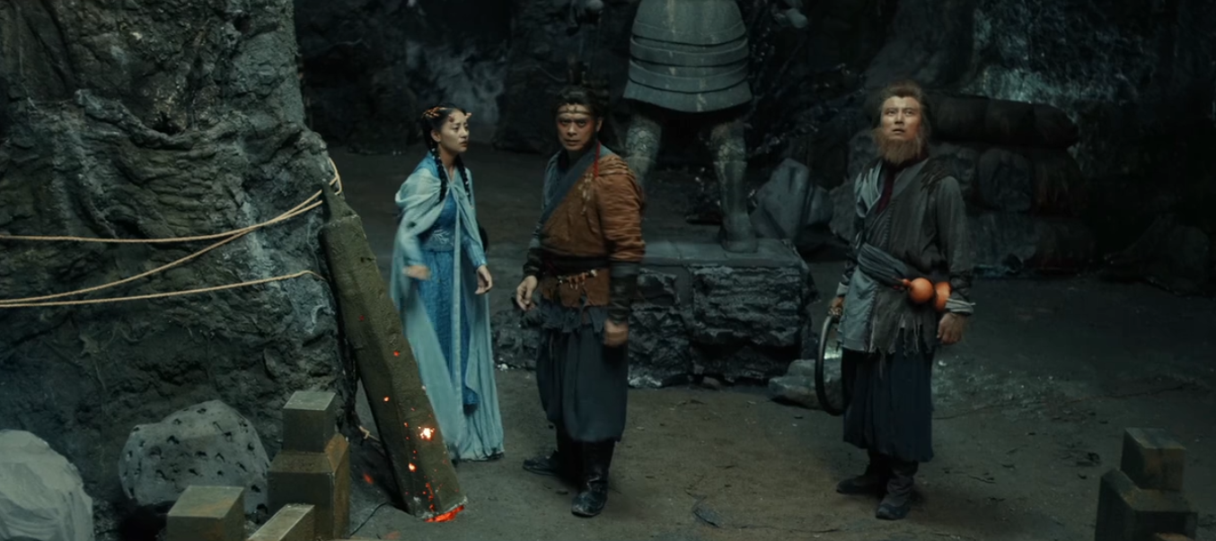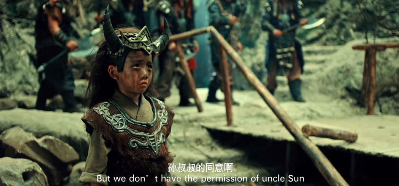 影片一开始就是牛魔王来到猴山找孙悟空借水,别的不说,先看看这副装扮,好歹上边那个还能看出来是牛魔王,下边这个分明就是个人,哪里像猴子了?