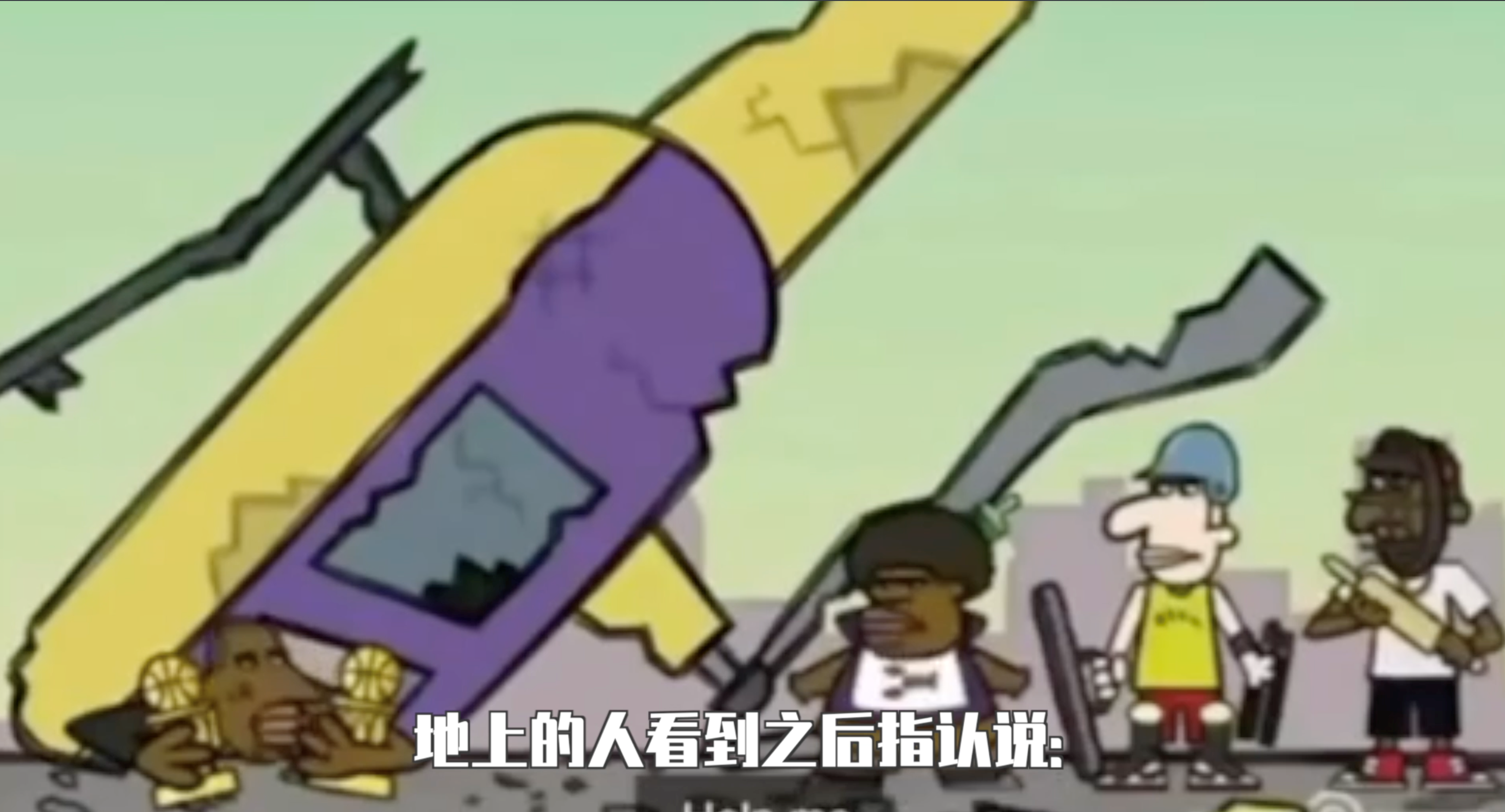 然而,在2017年播出的第21集中,有一名黑人乘坐直升机坠落的情节。剧中的黑人举着两座奖杯,地上的人看到后指认说:“这是科比吗?!”紧接着,飞机爆炸,火焰四起。救援已经来不及了。随后,五只戒指不偏不倚地落在人的脚下。这集动画剧的播出时间是2017年,让人难以置信的是,故事中的坠机、大火等细节,与现实世界里科比坠机事故几乎一模一样。