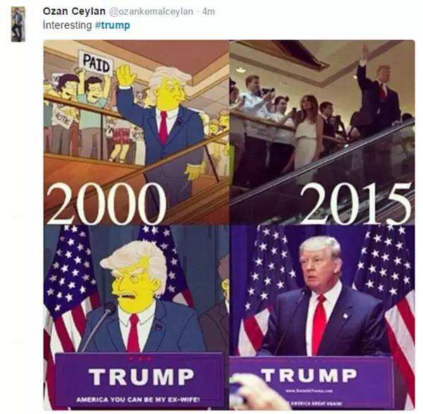 最著名的是在2000年《巴特到未来》这集里面,《辛普森一家》就已经预言了特朗普会当选美国总统。