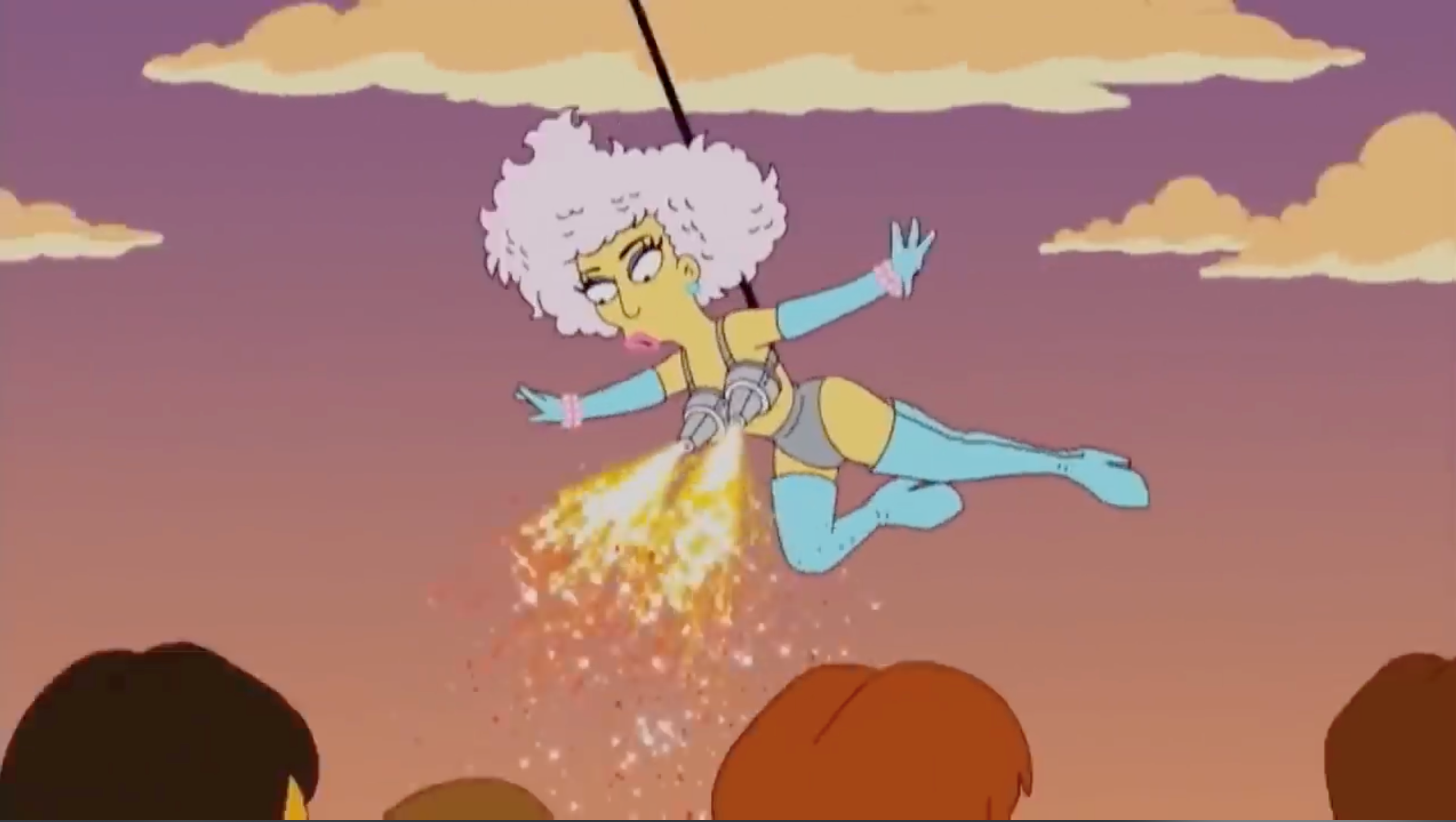 第23季22集中,“丽莎走gaga路线”,丽莎开始十分迷恋lady gaga。23季的拍摄时间是2012年,也就是lady gaga刚刚在欧美音乐圈开始崭露头角的时候,但这时候的动画中,就直接把她弄到超级碗当中表演了。转折来了,5年后的,2017年的超级碗,lady gaga真的就去表演了。连表演模式也是如出一辙。