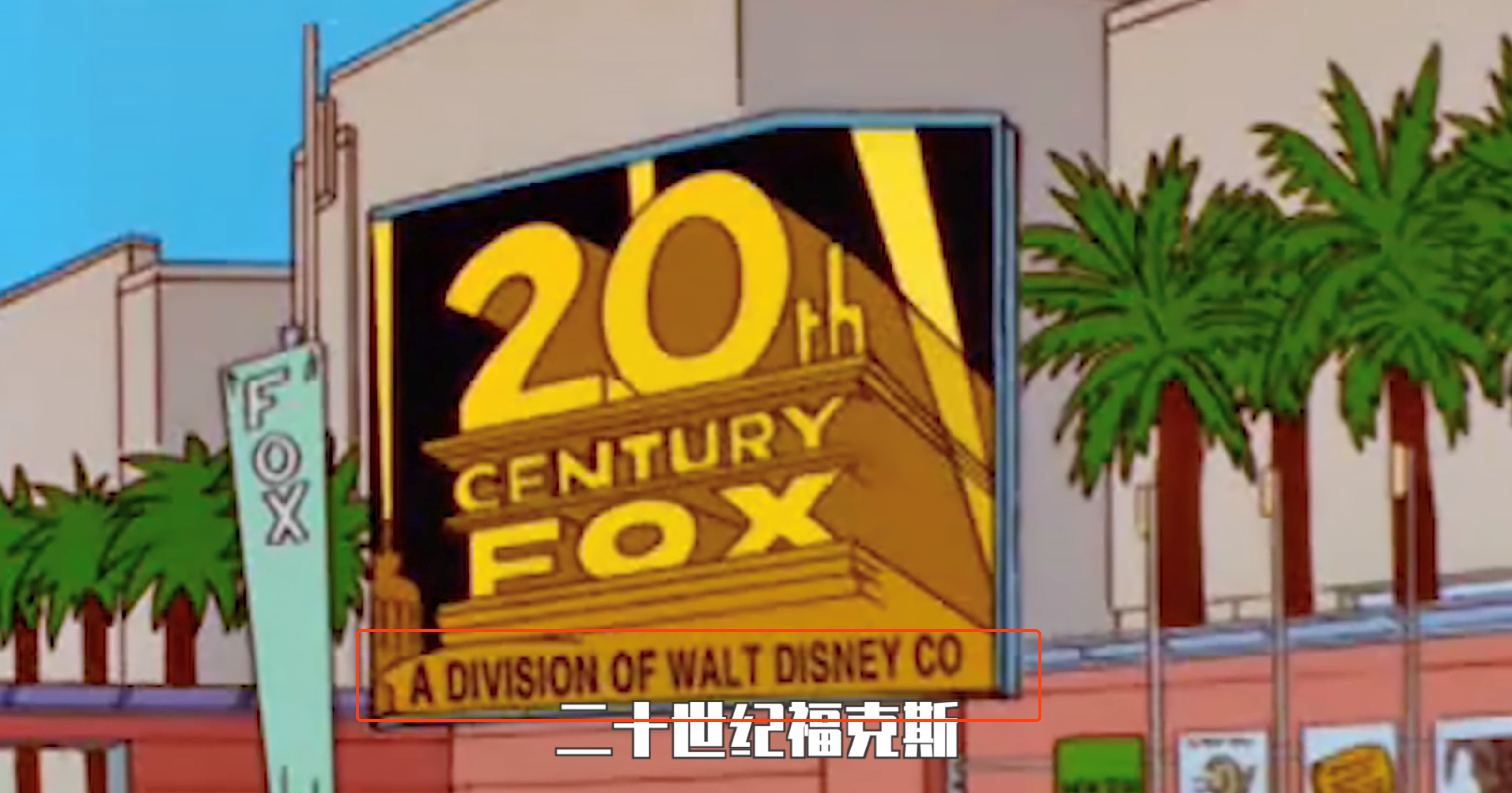 我们可以看到动画招牌上写着“20世纪福克斯”,下边写着“分属于迪士尼的部门。”而直到2019年3月20日的下午12点02分,迪士尼公司对21世纪福克斯的收购才正式生效。