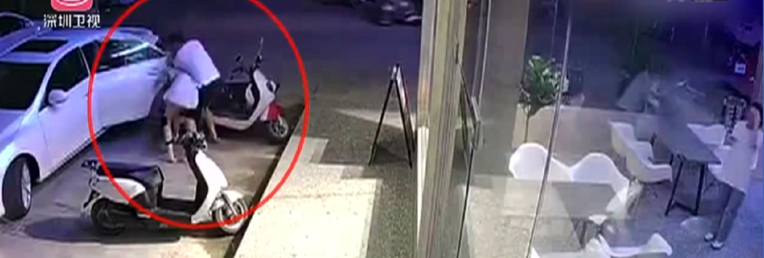 在大庭广众之下,一名年轻男子粗暴地用手反扣着女孩的脖子,将她往一辆白色小汽车后座拽拉。女孩一边奋力挣扎,一边发出惊恐的哭喊声。
