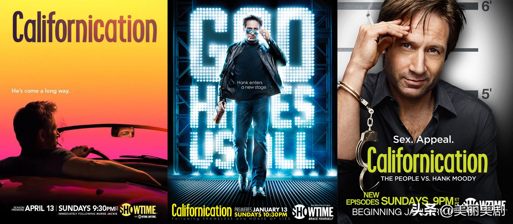 californication,为您讲述失意男人们的故事!还有美国娱乐圈摇滚圈作家圈子里所有的阳光和阴暗面,当然阴暗是主色调。