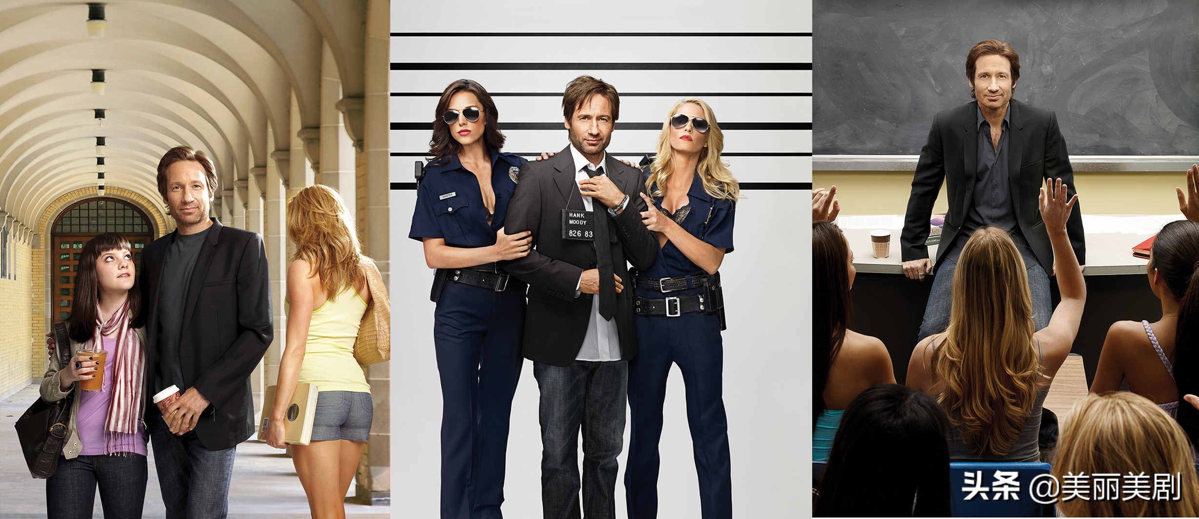 我们的x档案中那个意气风发的探员转眼成了失意作家,年近50的他和剧中主角hank有颇多相似之处,从x档案的光环到如今平平反响,可以说这部剧集也算为他量身定做了。