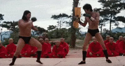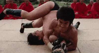 李小龙和洪金宝在《龙争虎斗》(1973)中搏斗的影像