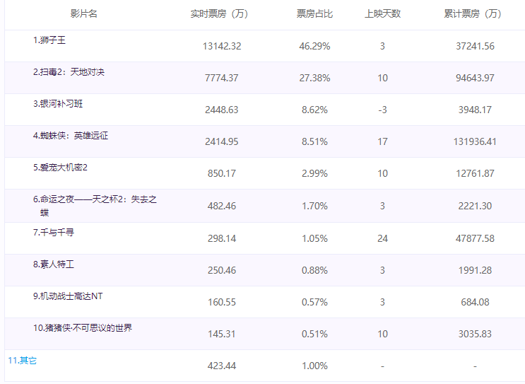 本周《狮子王》正像迪士尼《美女与野兽》一般,在口碑一般的情况下三天获得近4亿元的票房成绩,这是情怀的力量,但是如果要走的远,比如要让故事更具感染力,也就是所谓的故事性要强。