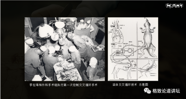 这样一来,就可以来进行外科手术了。他的这个异想天开,后来竟然实现了,被称为控制交叉循环手术,即活体交叉循环。