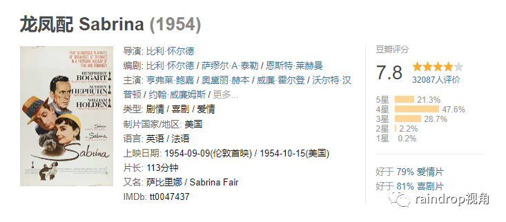 《龙凤配》这部影片非常值得一看,赫本的风情万种也让我挪不开眼。