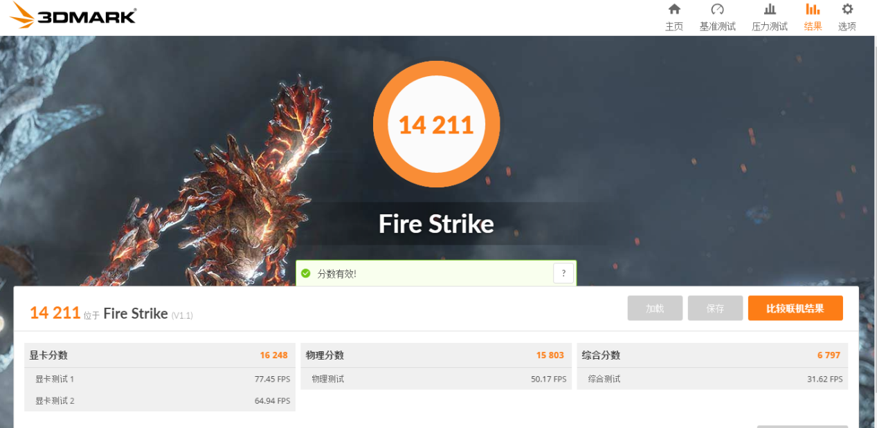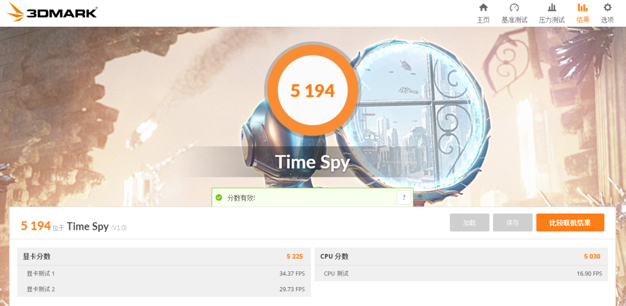 为了进一步了解这款独显的游戏表现,选择了3dmark中的fire strike和time spy两种模式来测试它的整体性能。在fire strike模式中,这款显卡获得了14211分的成绩,而在time spy模式中,也获得了5194分的成绩,均表现出了不俗的性能。