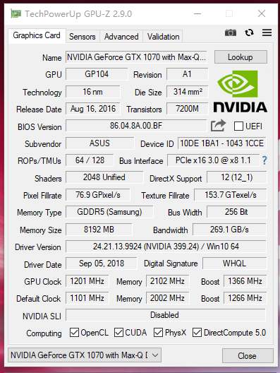 冰刃3搭载的这款geforce gtx 1070 搭载max-q设计的独显在cuda核心数量、显存规格上与普通geforce gtx 1070显卡完全一致,并使用了物理性质相同的显示核心。而二者之间主要不同点在于两种显卡的频率设定差异较大, max-q版的频率只有普通版频率的77%,由此可见,geforce gtx 1070 搭载max-q设计独显的拥有优秀的能耗比,令机身可以做得更轻薄,整机续航成绩也相当可观。
