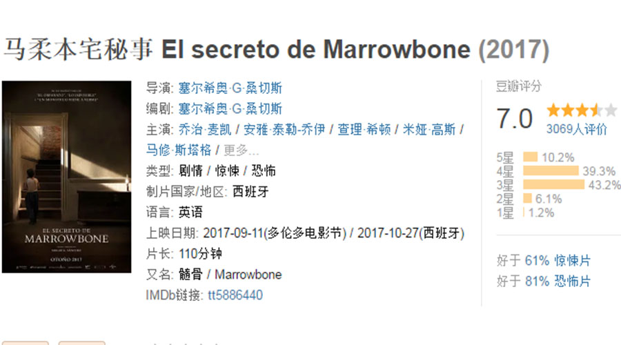 但《马柔本宅秘事》有件事做得还不错,就是调动出了人的情绪。这点擅长一惊一乍的国产恐怖片就很难做到,他们可以叙事节奏很快,却连基础的情感都表达不清楚。