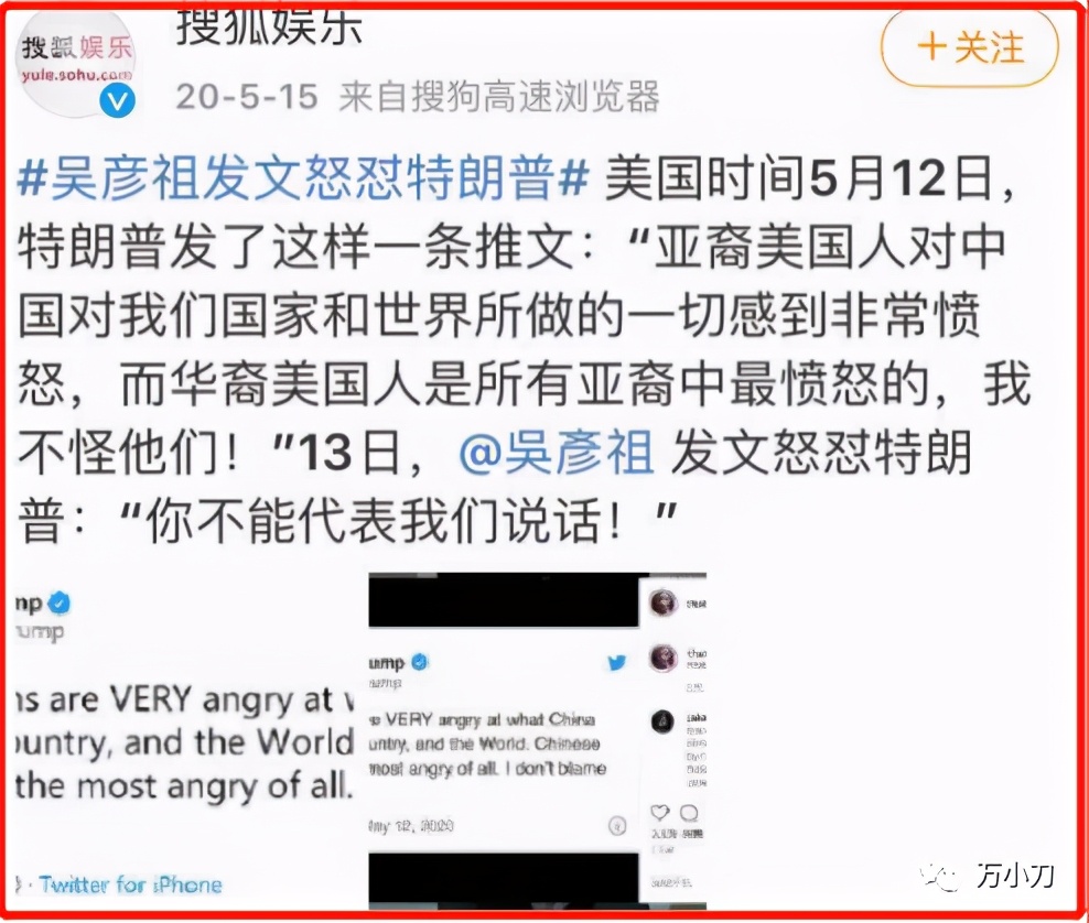 对此,吴彦祖直接正面刚特朗普说:“你不能代表我们说话!”