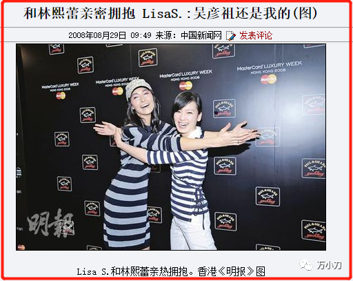 只是一个月后,林熙蕾与吴彦祖正牌女友lisa在活动中狭路相逢,两人虽大方拥抱,消解误会。但lisa迫不及待宣示主权,说:吴彦祖还是我的!