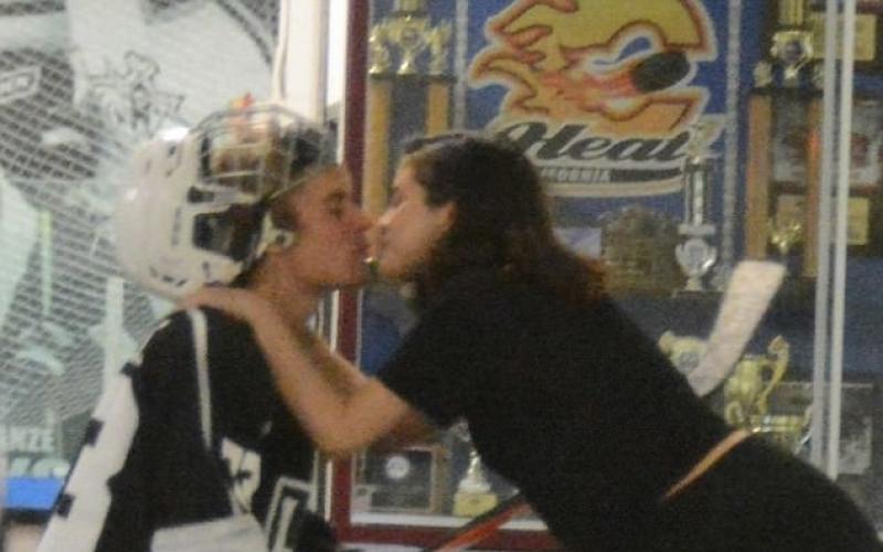 justin打曲棍球,selena献吻证明复合。(互联网)