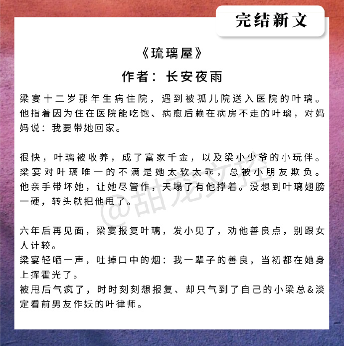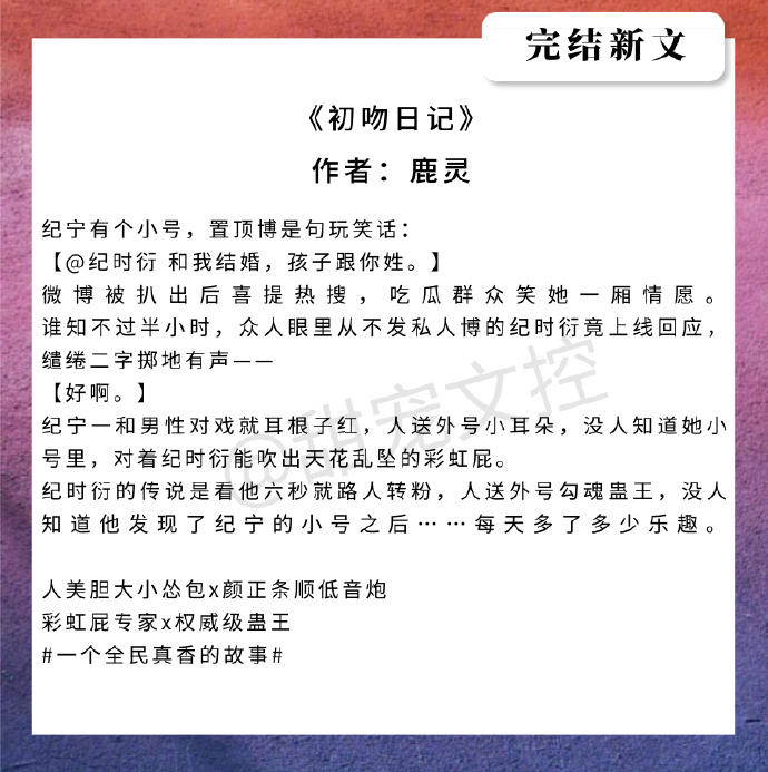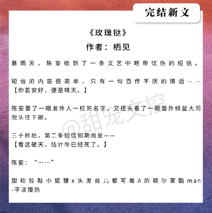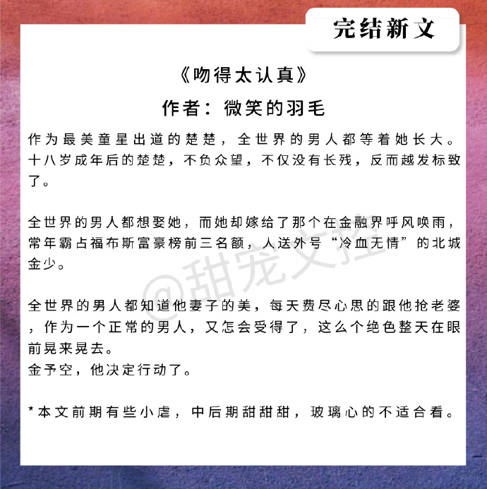 然后,今天就给大家盘点了一波近期完结的好文,都是我比较喜欢,然后比较甜的。