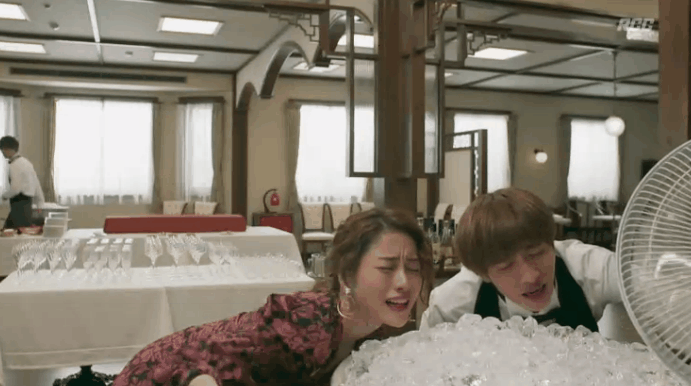 所以店员想了一个办法,开着电风扇,吹着一大盆冰块,勉强可以凉快一些。