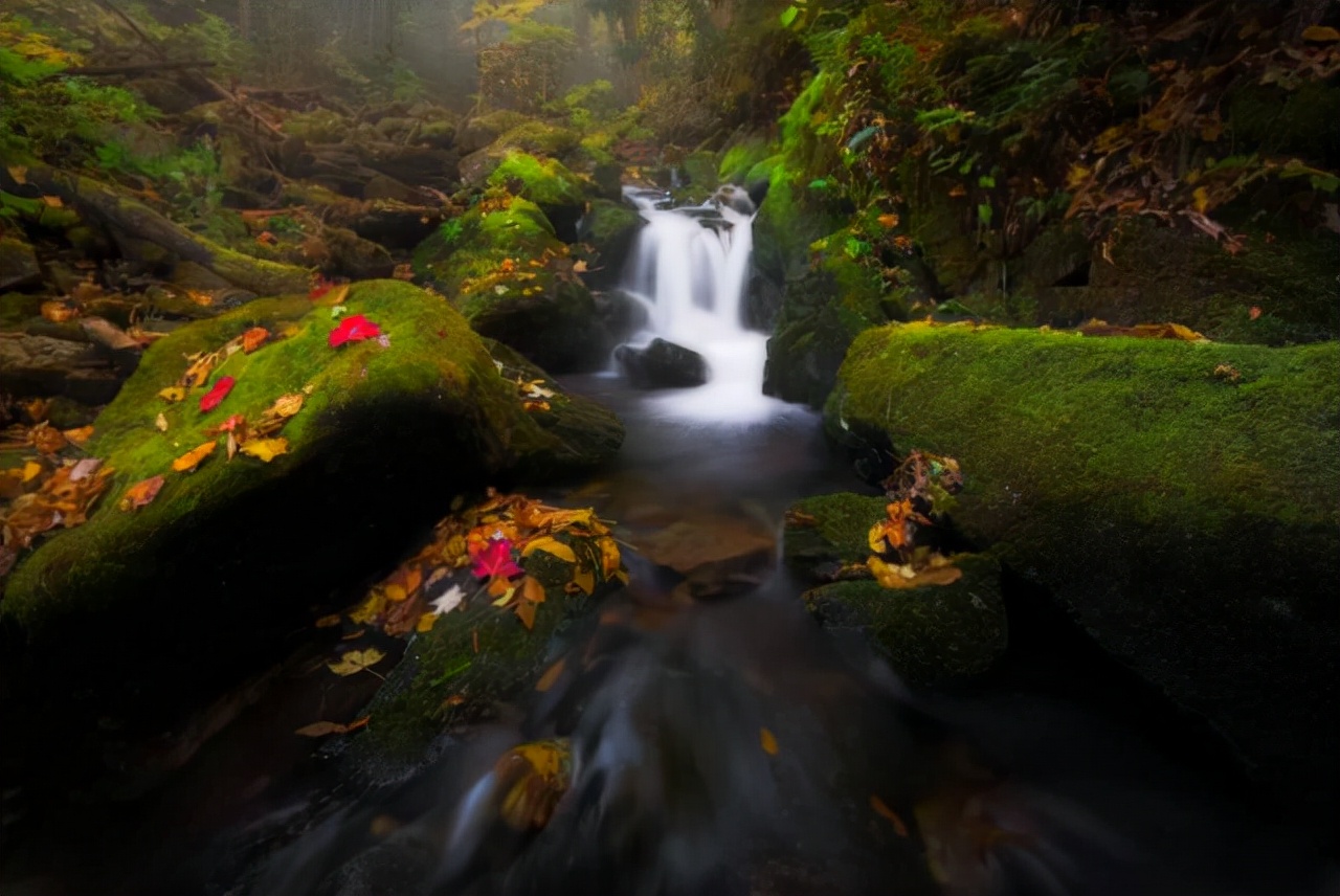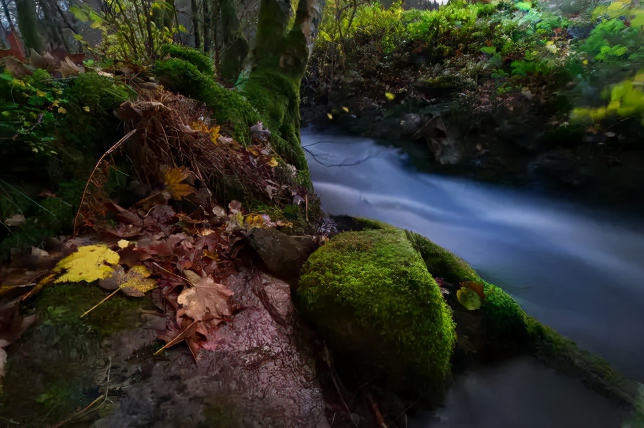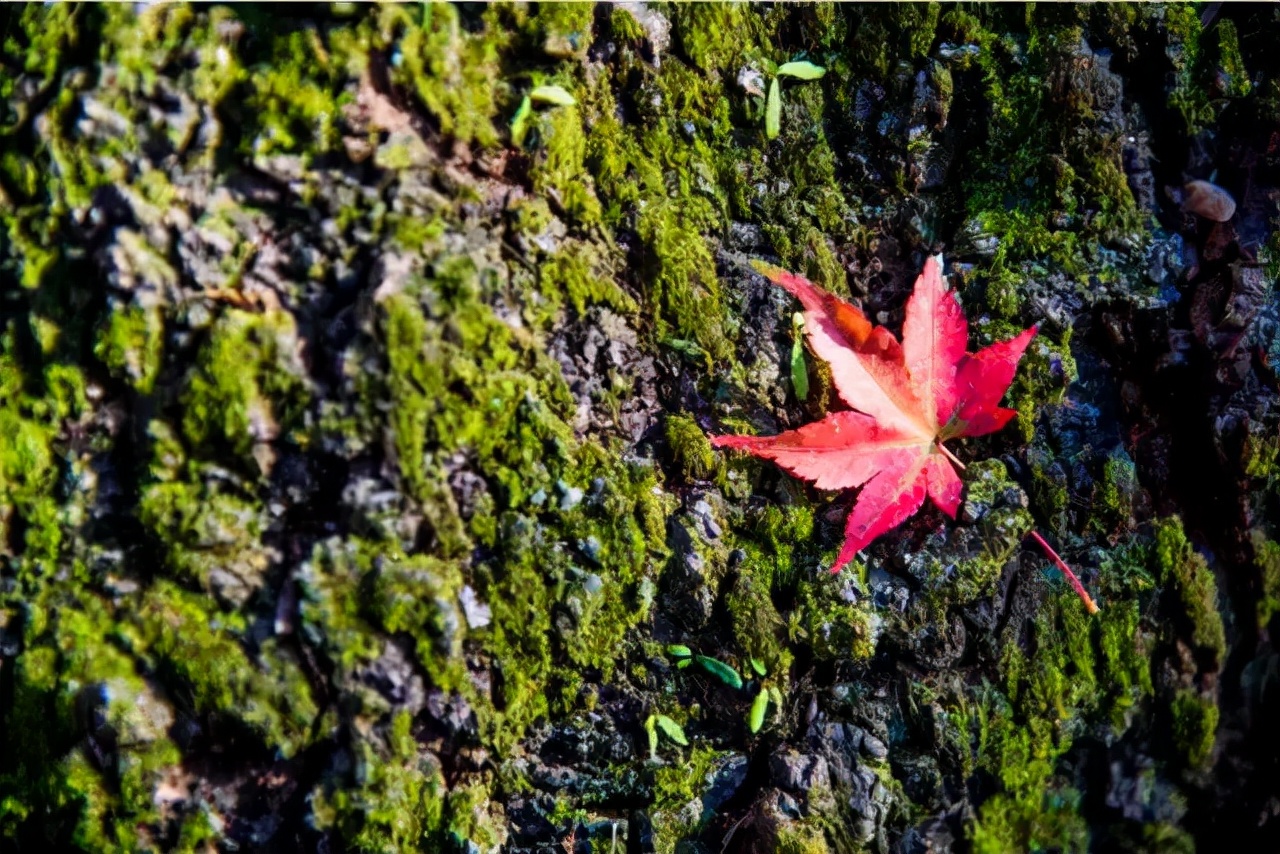 因为其生长的环境和特有的颜色,在秋天更有它独特的味道。摄影师常用青苔做前景来拍流水慢门,同时以落叶作为点缀,拍出的画面有另一种美。给人以宁静,予己以清幽的感觉,这正是摄影人想要的画面效果。
