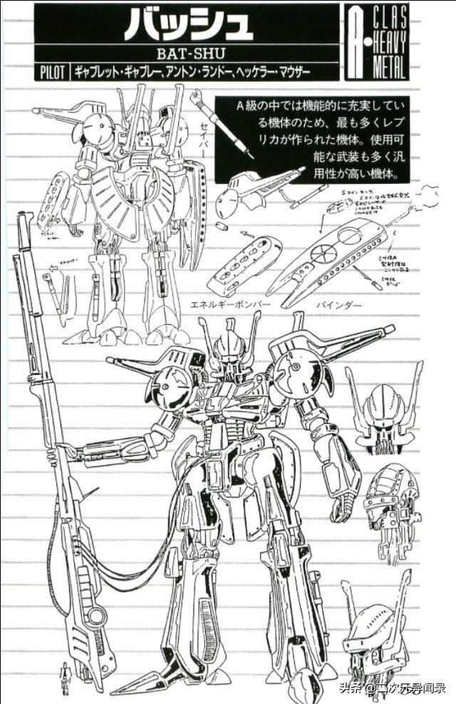 mh是由星团发明的一种重型武器,高达几百米,能轻易的毁灭一座城池,是投入国家间战争的主要力量。永野护笔下的mh非常有特色,它既不像高达里粗壮强悍的机甲,也不像大友克洋笔下插满蒸汽管道的球形机器,反而像是现实中骨感且精致的女性,无处不透漏着优雅的气质。