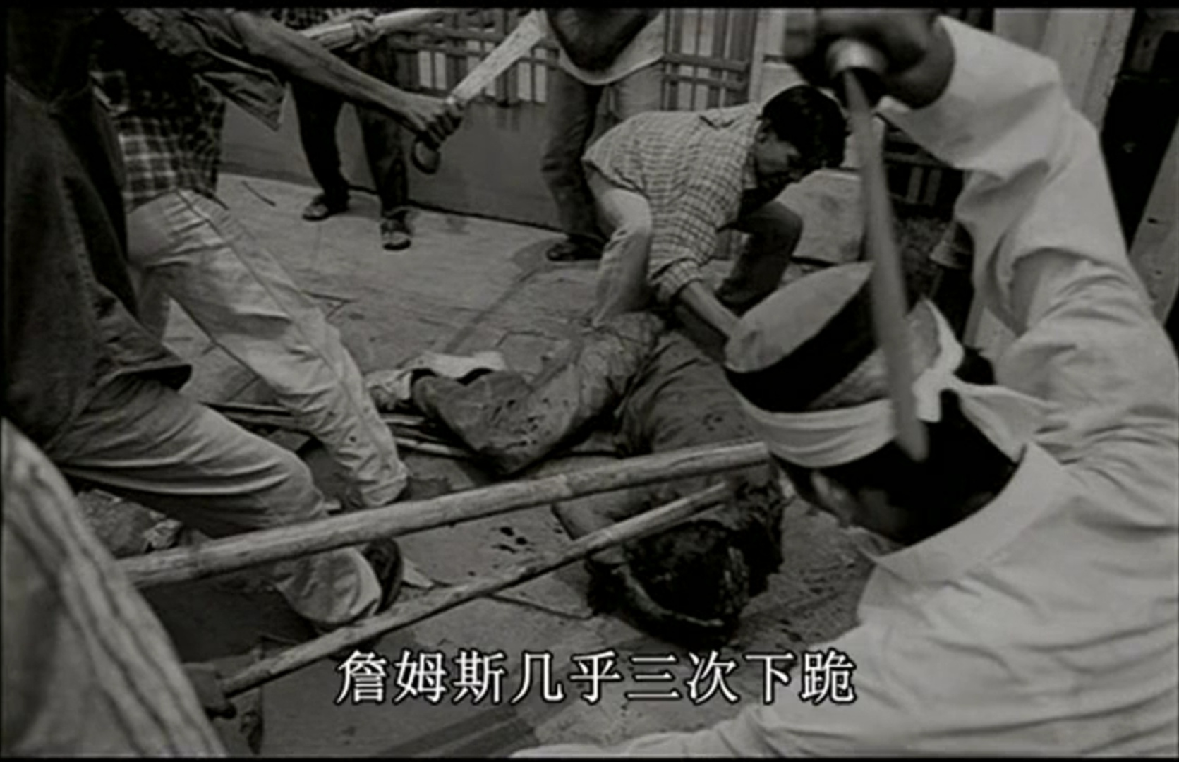 一群手持尖刀木棍的暴徒追打着一个满身是血的人,暴徒们计划好先折磨这个人再开始殴打,纳切威几乎三次下跪祈祷了20分钟,哀求他们没有理由杀这个人,但暴徒们并不听,他们还是杀了那个人。
