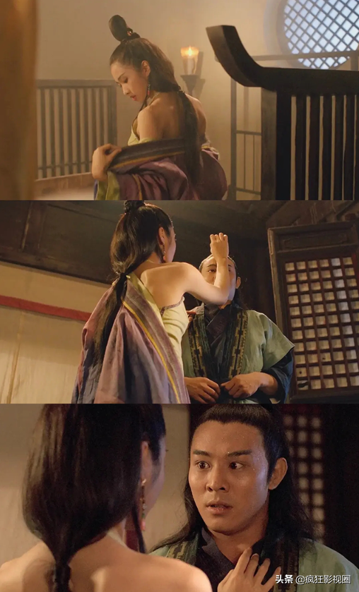 黎姿版本的周芷若,导演一点也不考虑观众的心情,黎姿只是背对观众,露出香肩,一副犹抱琵琶半遮面的姿态,让观众意犹未尽。