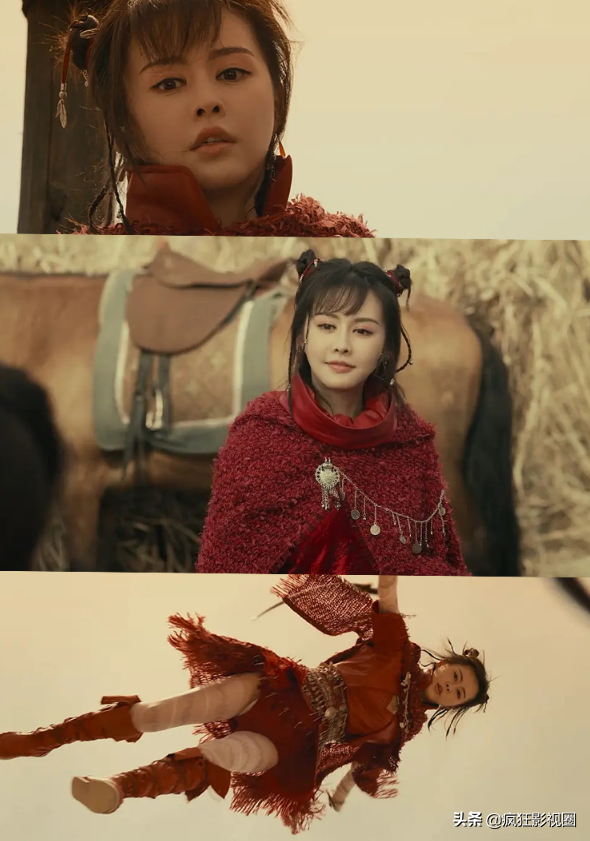 再来看云千千版本的小昭,为了拯救一下观众受伤的心灵,王晶还特意给云千千设计了一场从天而降的镜头,就是不知道古代有没有这么拉风的内搭。