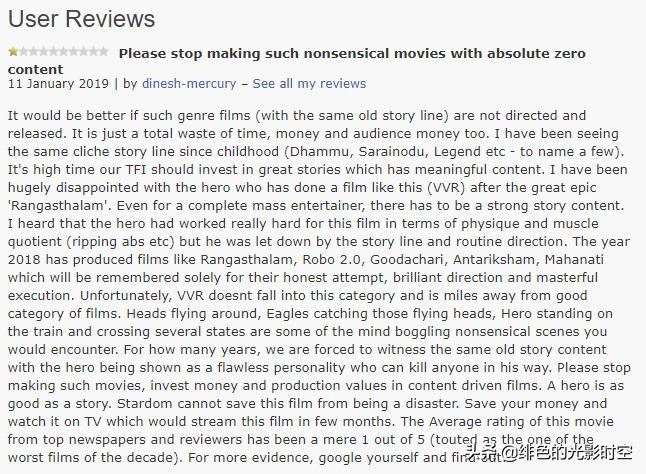忍无可忍的印度观众,甚至写下评论:请不要再拍这种无聊、空洞的电影啦!