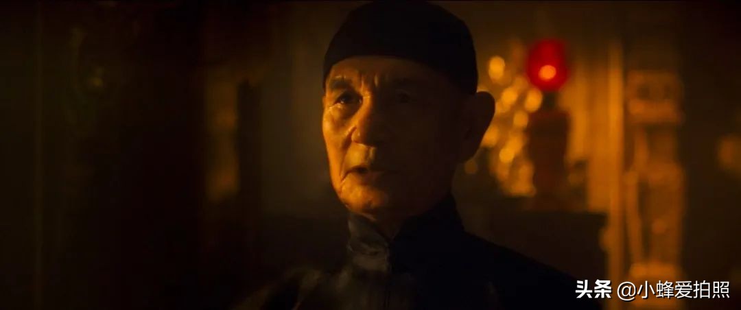 比如在这部戏中的账房先生,千面如来---刘洵先生。刘洵先生刚一出场的身份是账房先生,脸上的光线斑驳,光比很大,明显的阴阳脸,直接刻画了一个阴损且斤斤计较的账房先生。
