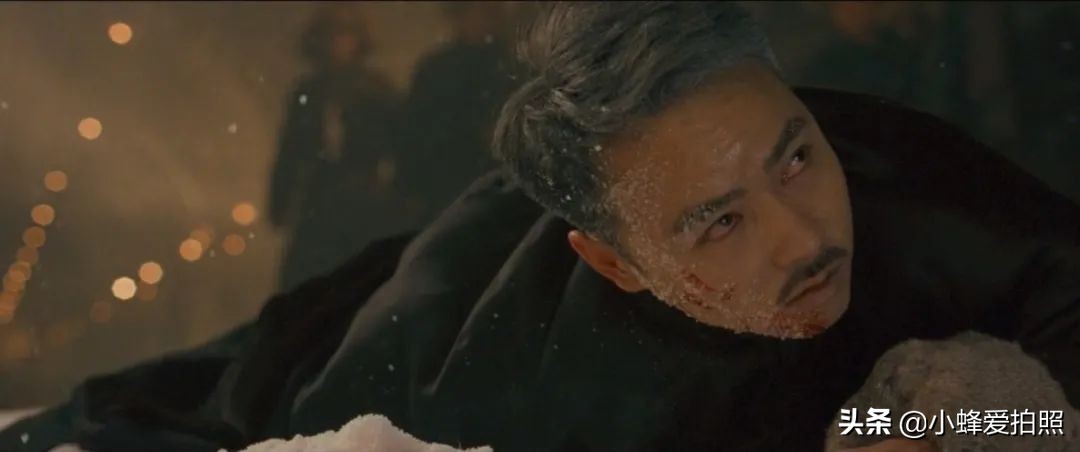 不管这个时候马三是不是不甘心,是不是惊讶,但是却论语中的一句话:“鸟之将死,其鸣也哀;人之将死,其言也善。”虽然电影中并没有最终表述马三是不是死了,但是重伤落败的下场却已是定局。这时在他身上的各种纷争纠结也因为这一幕结束。所以他脸上的光线不再是美人光,也不再是大光比。让他脸上的光恢复到了一个柔和的状态。