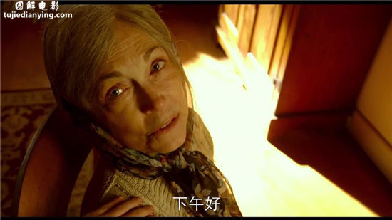 泰勒准备去看门,突然门外闪出一个人影。是外婆,穿着白色睡衣,手背在后面。