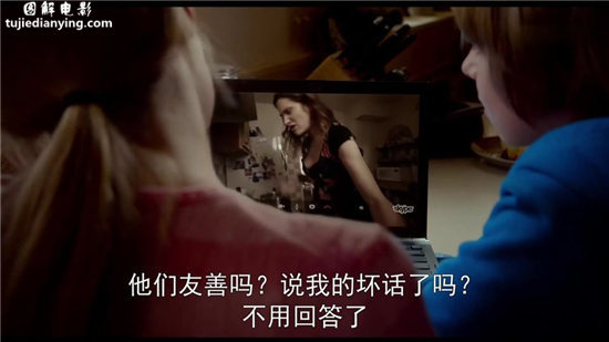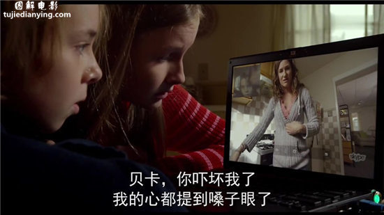 贝卡对着镜头哭泣。这里我们知道了,姐弟俩在父母离异后心理都产生了疾病。弟弟泰勒认为妈妈爸爸离婚是自己比赛输了的原因,还患上了洁癖。姐姐贝卡也有自我恐惧症,不敢正视自己。这个片子里个人看来都有病啊,外公生理不能自已,外婆有“日落综合征”。