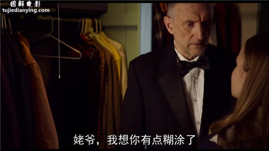 外公换好衣服,要去参加盛装派对,贝卡提醒外公记错了时间。