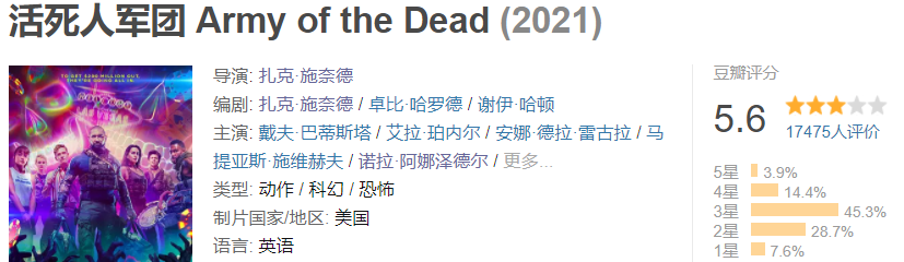 更关键的是这俩一个超级烂片一个勉强及格,混搭在一起的《活死人军团》也不愧惨遭滑铁卢,五分多正正好好。