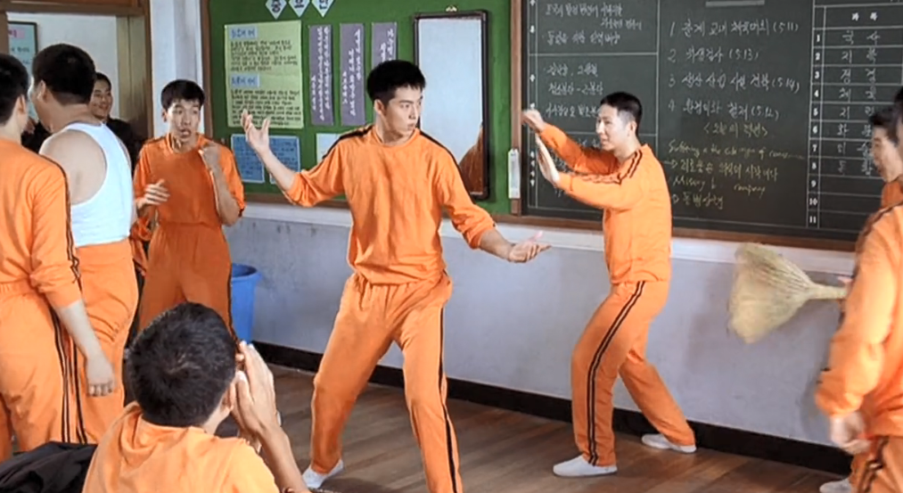 当然,英雄救美这事儿不好干,毕竟打的是高年级的学长,你们当时带着美女逃跑了,但是人家不会到班里找你。于是泫洙和佑植被逼到墙角挨了一顿揍。但是佑植忍不下去,一帮人又打在一起,这次泫洙又站在了佑植身边,一起战斗了。不过泫洙的打架水平一般,挨揍得不轻。